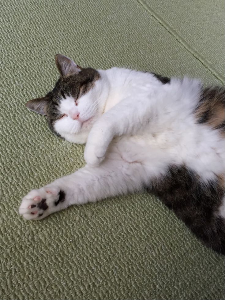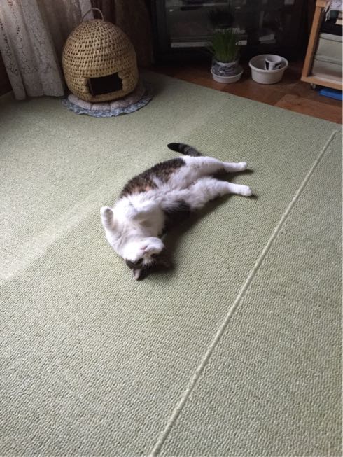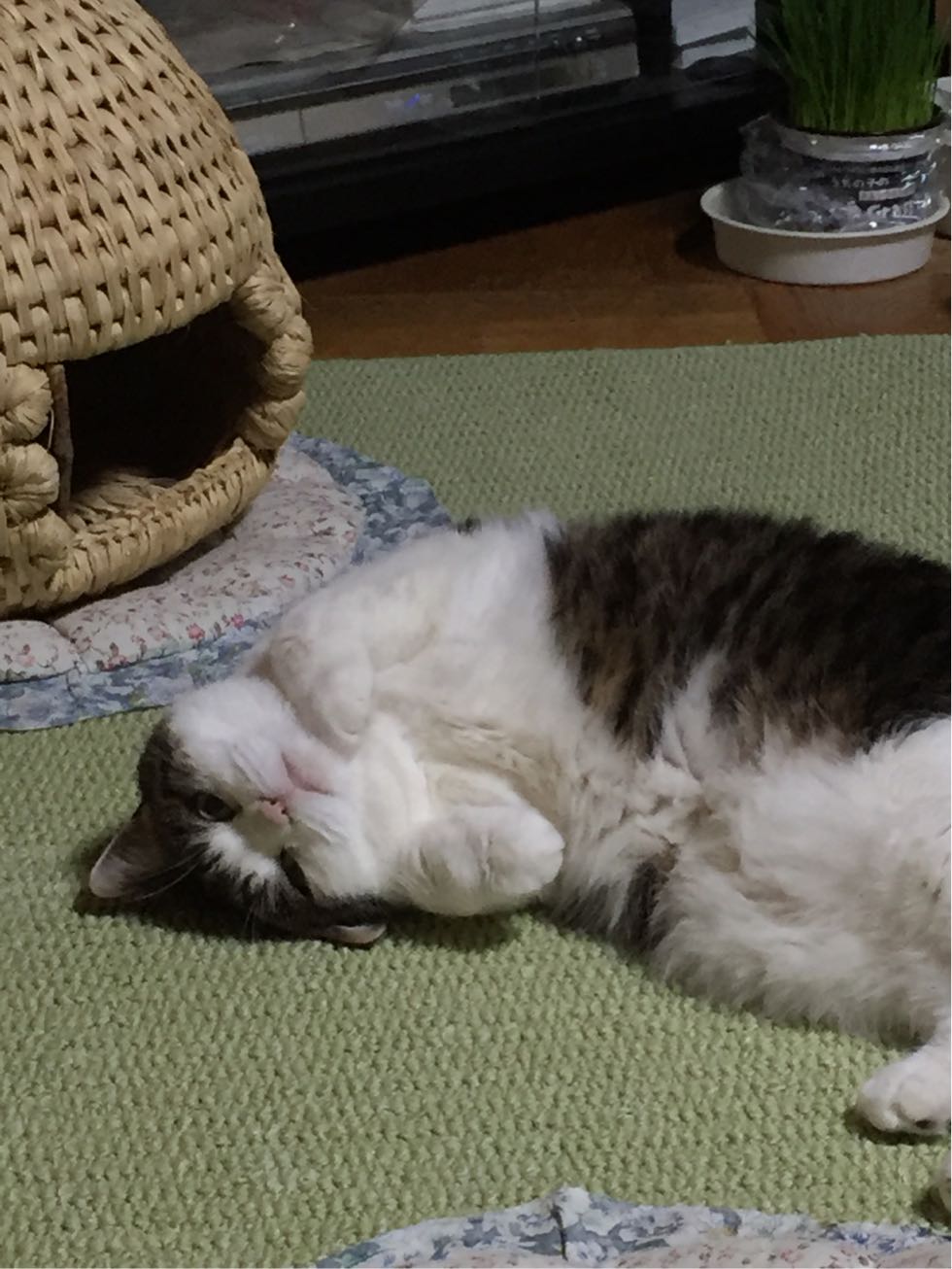特徴:足が短い。鼻の頭がもこっとしている。モンペをはいているかのような後ろ足である。大また開きで寝る。時折DVになる。ピンポン♪が鳴ると(来客)ダッシュで飛び出し、お迎え役をしつつ、脱走の隙を狙う。