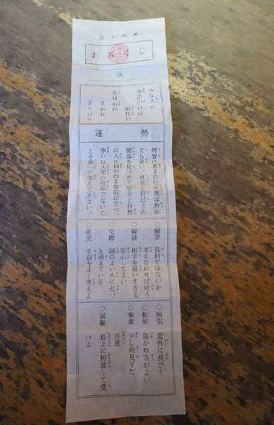 鶴岡八幡宮でおみくじを引きました。
