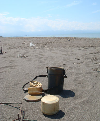 沢山の漂流物の中に、なぜかきれいに並べられていたのです。