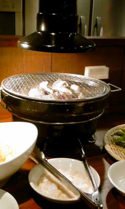 ホルモンと鶏肉と活たこを焼いていただきました。