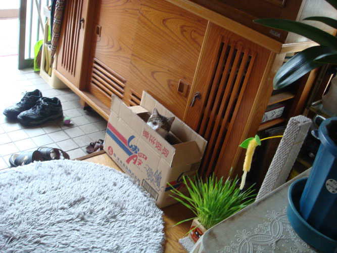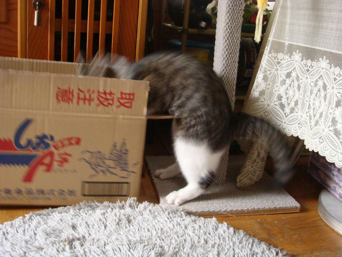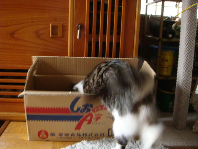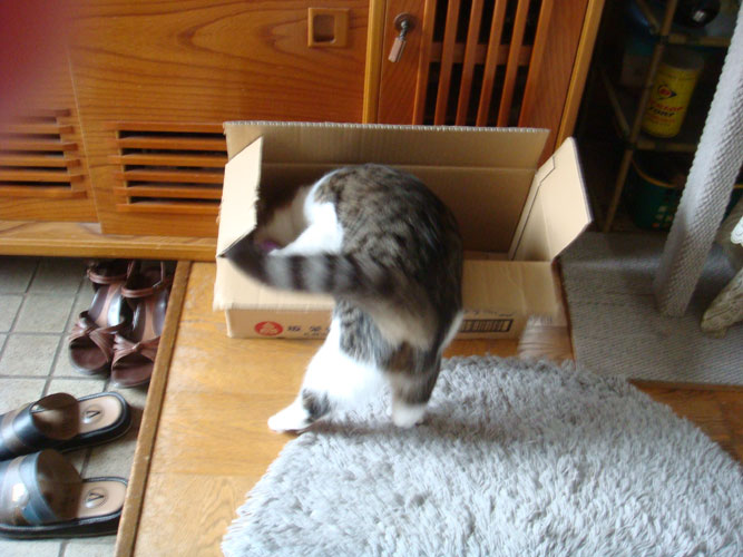 段ボールには入るのと入らないのがあるようです。狭いのがいいのかな?