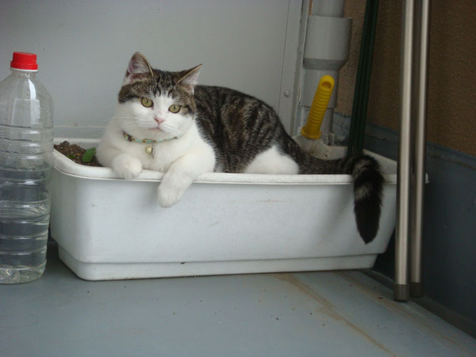 ベランダに追いやられていました。