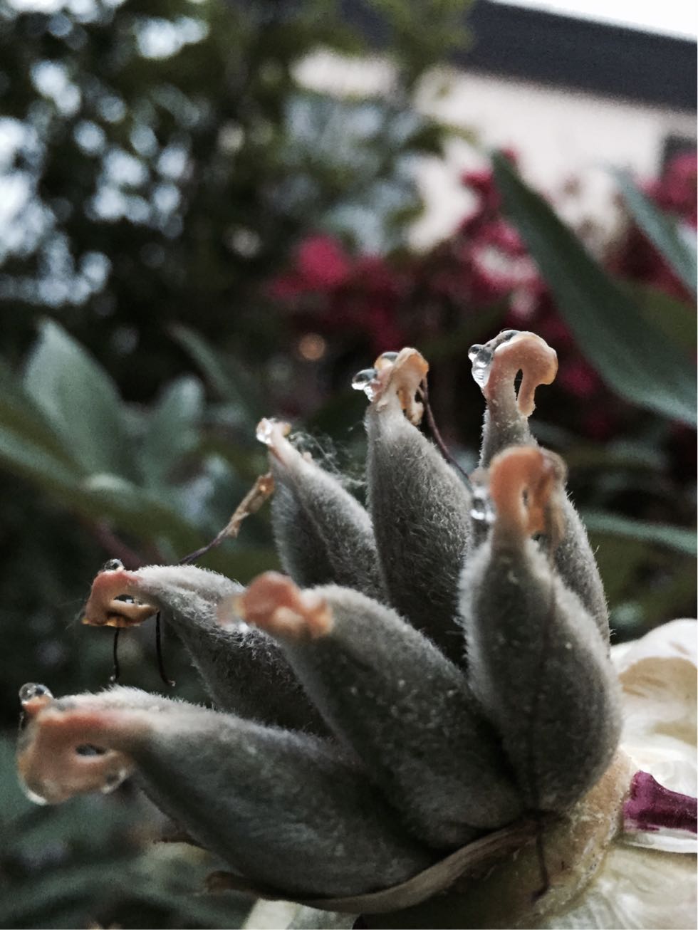 木ボタンの種子に蜜?ツユ?がじんわり。