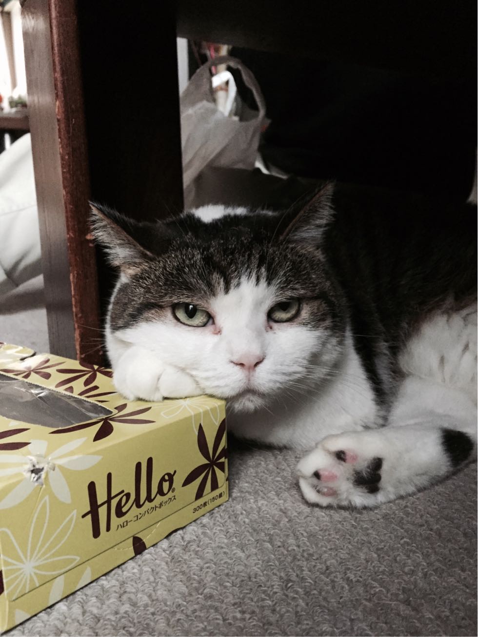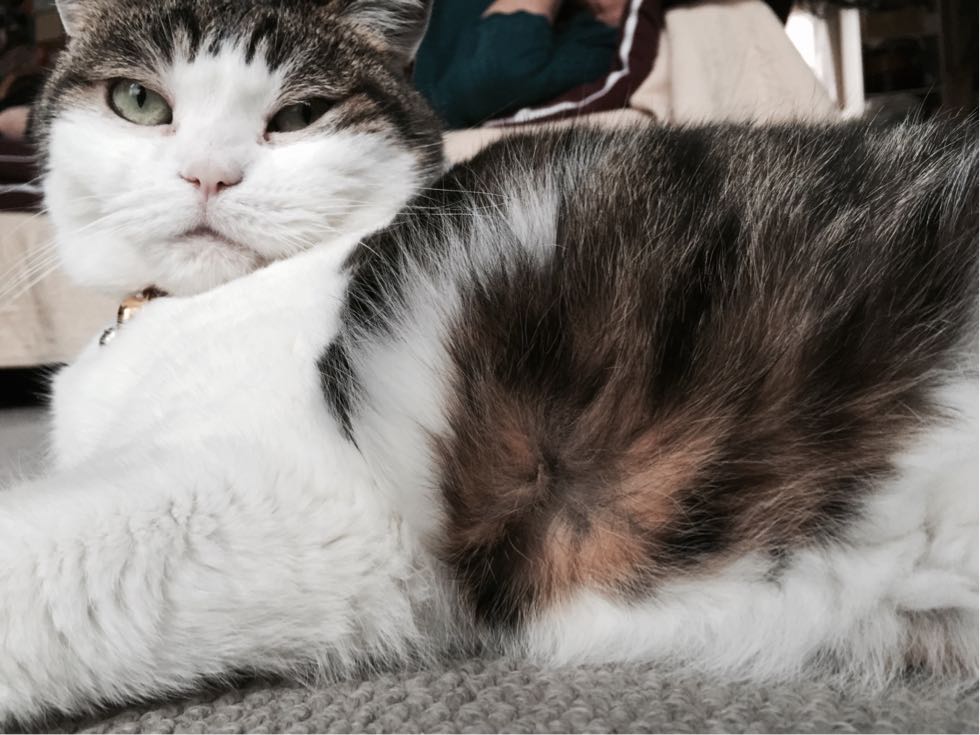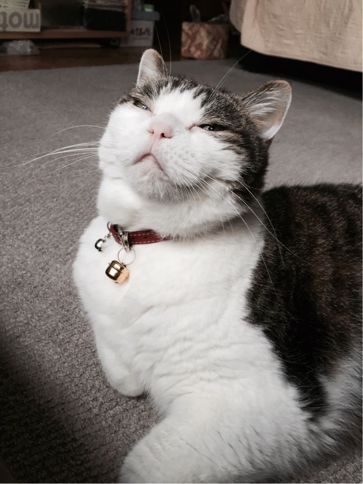 特徴:足が短い。鼻の頭がもこっとしている。モンペをはいているかのような後ろ足である。大また開きで寝る。時折DVになる。ピンポン♪が鳴ると(来客)ダッシュで飛び出し、お迎え役をしつつ、脱走の隙を狙う。