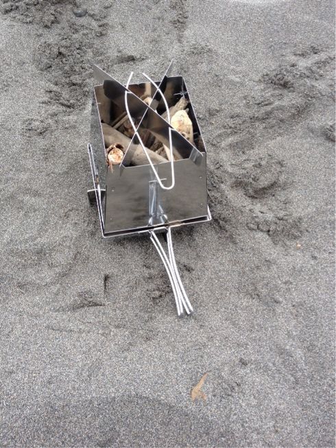 先ほど撤収してきた浜で拾っておいた流木を投入!!