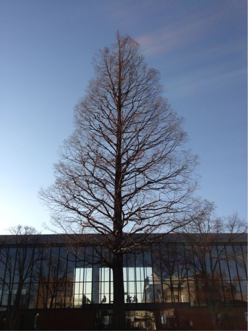 まだ緑じゃない林の中で、あきらかに木々とは違うシルエット。