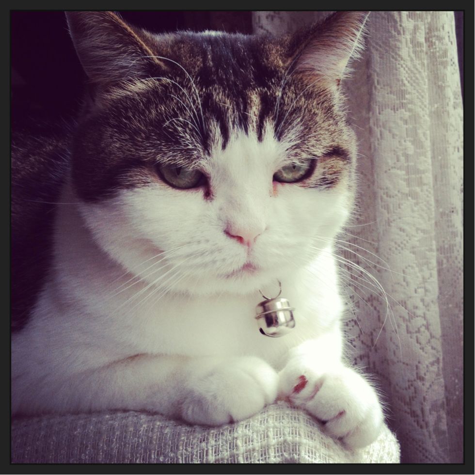 特徴:足が短い。鼻の頭がもこっとしている。モンペをはいているかのような後ろ足である。大また開きで寝る。時折DVになる。ピンポン♪が鳴ると(来客)ダッシュで飛び出し、お迎え役をしつつ、脱走の隙を狙う。