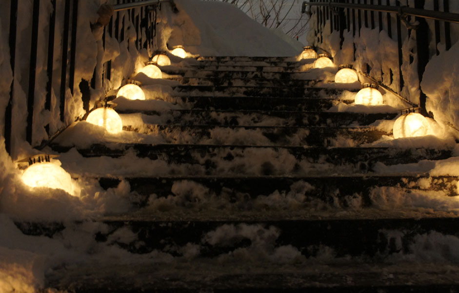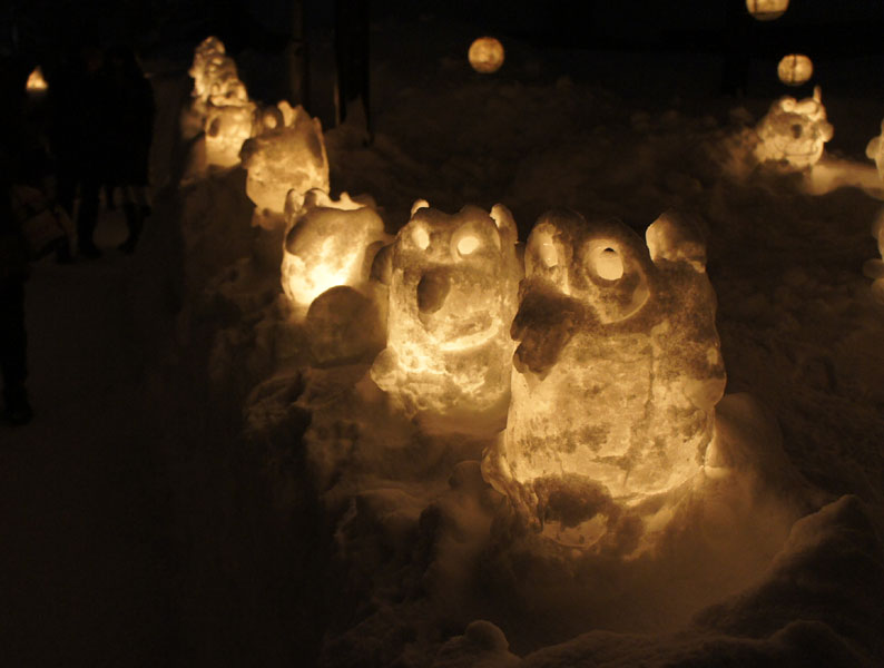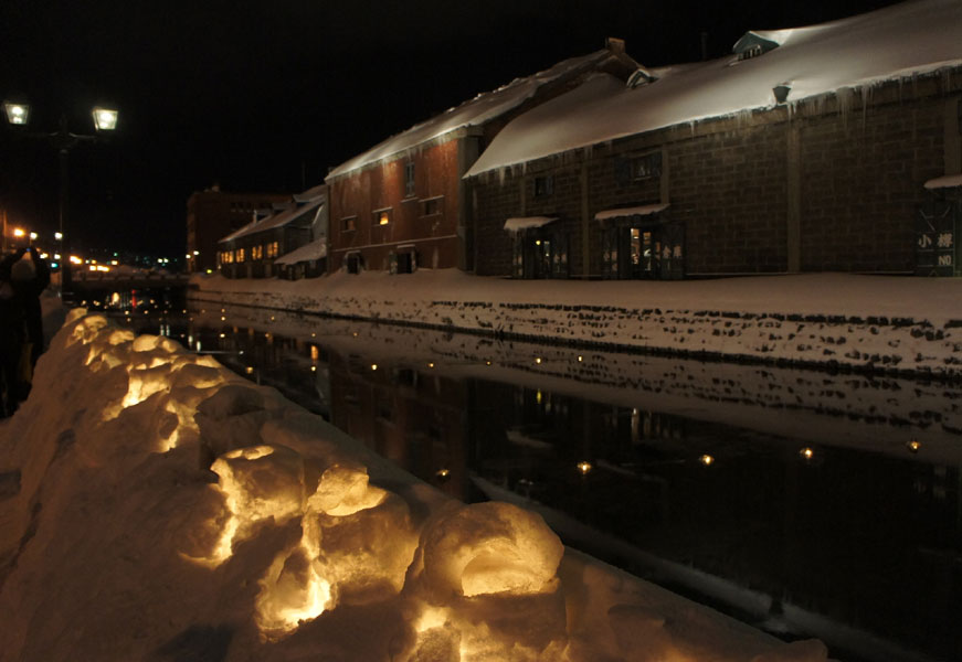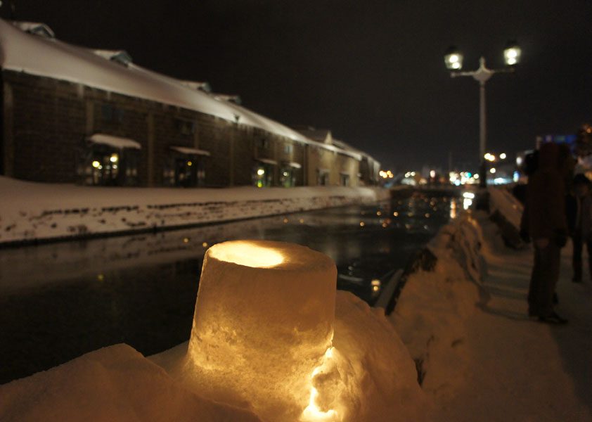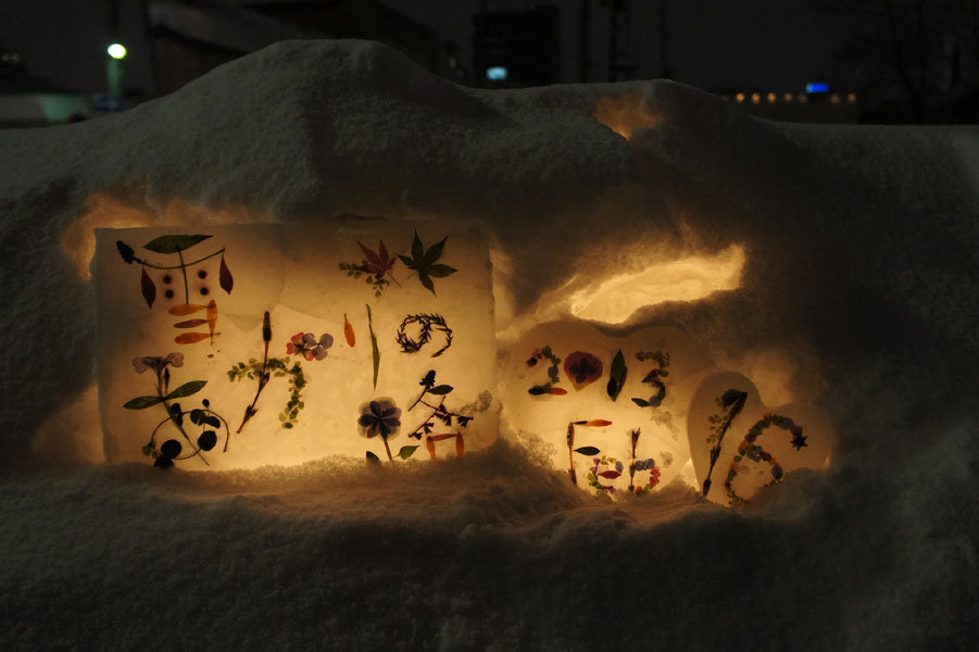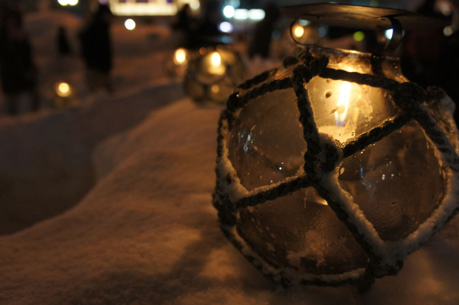 冬ならではの光景、水面には浮き玉キャンドルがゆらゆらしています。