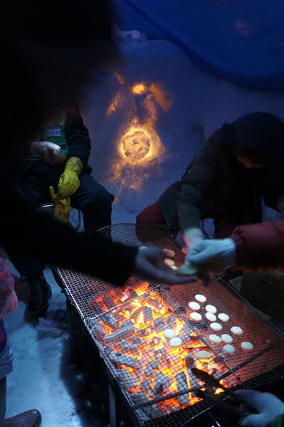 途中で、お餅やジャガイモを網焼きしている場所があり