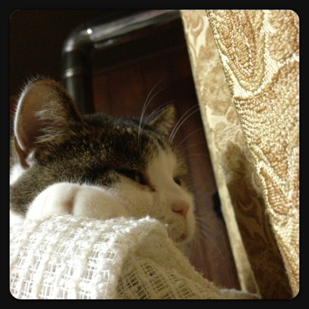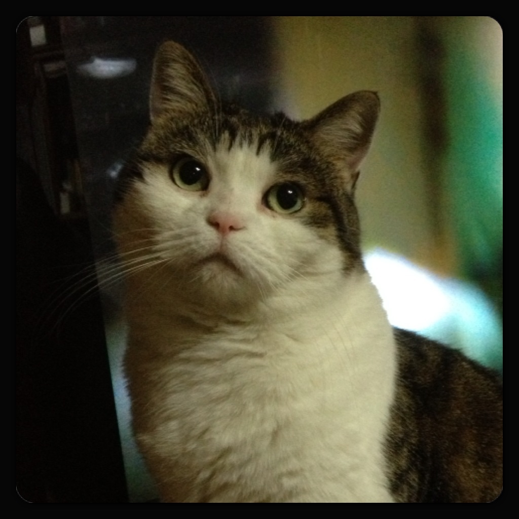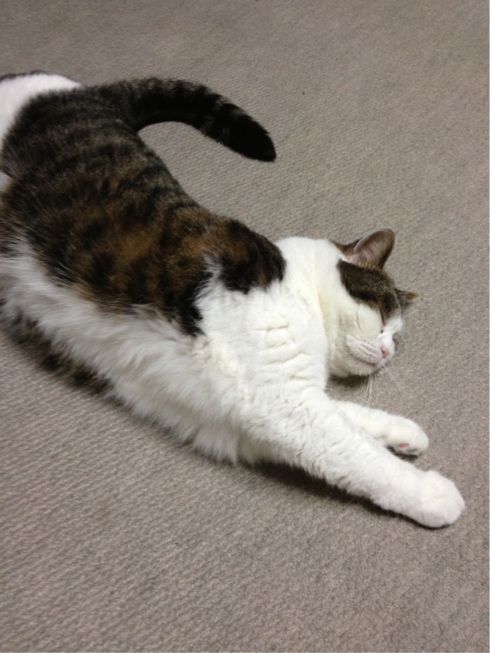 特徴:足が短い。鼻の頭がもこっとしている。モンペをはいているかのような後ろ足である。大また開きで寝る。時折DVになる。ピンポン♪が鳴ると(来客)ダッシュで飛び出し、お迎え役をしつつ、脱走の隙を狙う。
