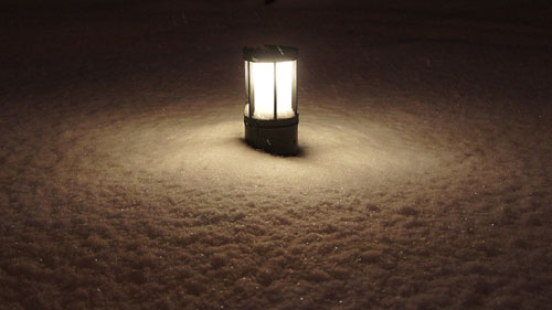 小樽駅までの道では、街灯も雪で埋まり気味。