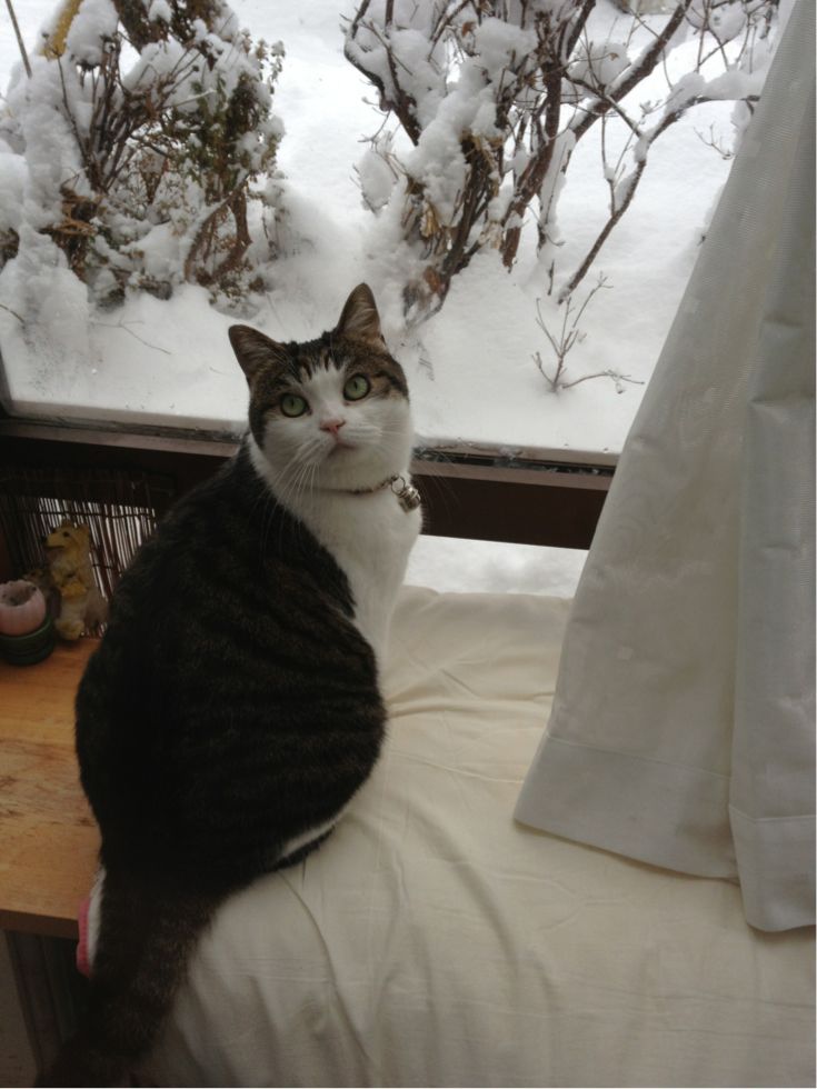 特徴:足が短い。鼻の頭がもこっとしている。モンペをはいているかのような後ろ足である。大また開きで寝る。時折DVになる。ピンポン♪が鳴ると(来客)ダッシュで飛び出し、お迎え役をしつつ、脱走の隙を狙う。