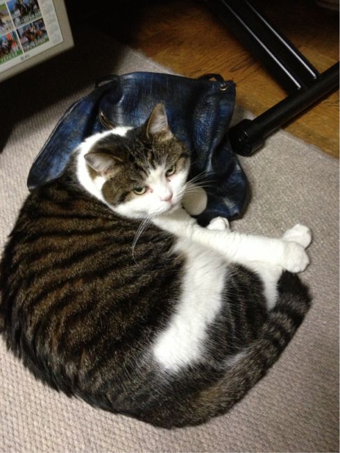 特徴:足が短い。鼻の頭がもこっとしている。モンペをはいているかのような後ろ足である。大また開きで寝る。時折DVになる。ピンポン♪が鳴ると(来客)ダッシュで飛び出し、お迎え役をしつつ、脱走の隙を狙う。