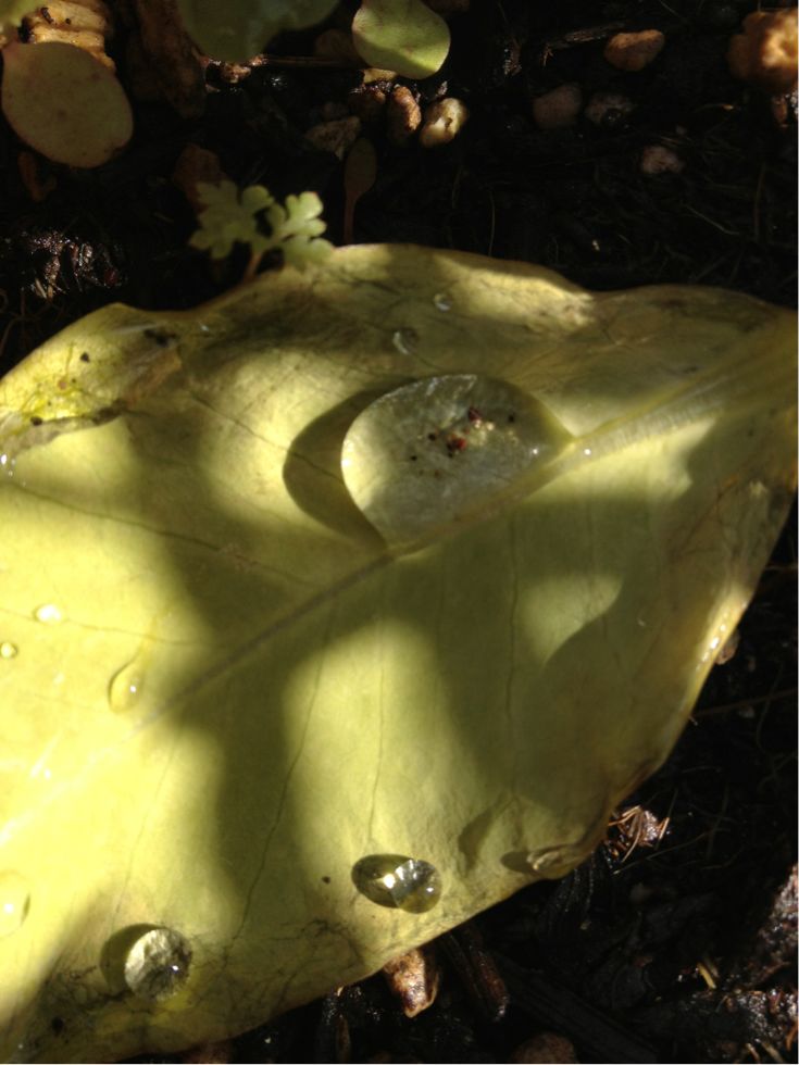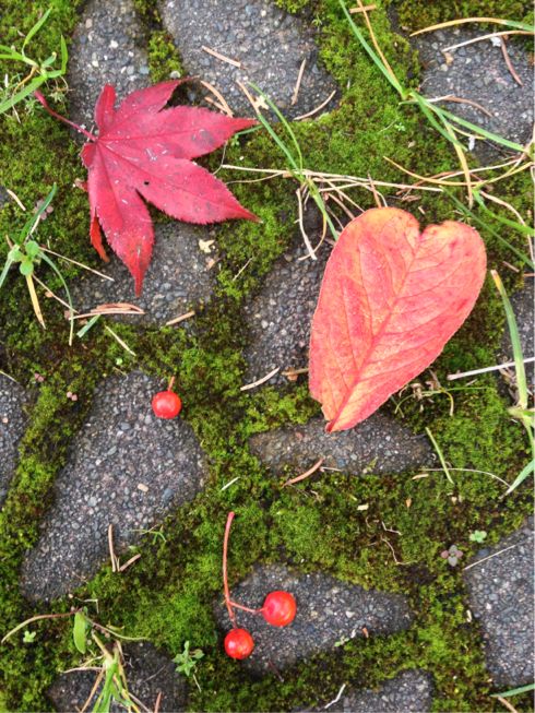 落ち葉の上に載った水玉がなんともかわいらしい事に気づけた10月。
