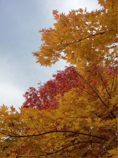 いつも通っている路が、紅葉で彩られとても明るく見えました。