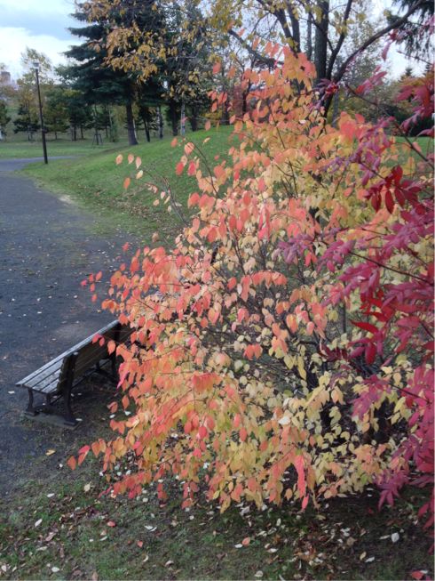 いつも電車から見える公園の紅葉が見事なので、買い物帰りに寄り道してきました。