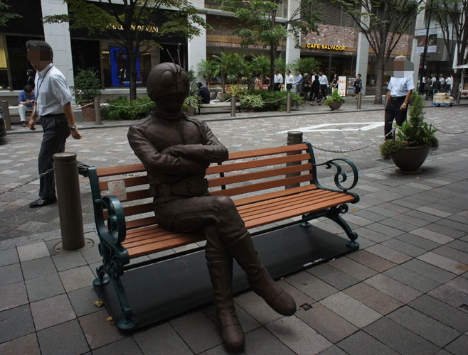 東京では、有名人がベンチに座っています。