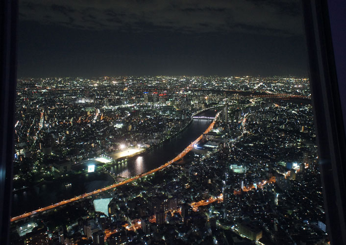 スカイツリーがプラスされた景色は、夜に見ると日本じゃないみたい。