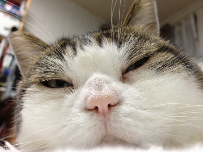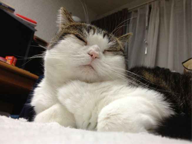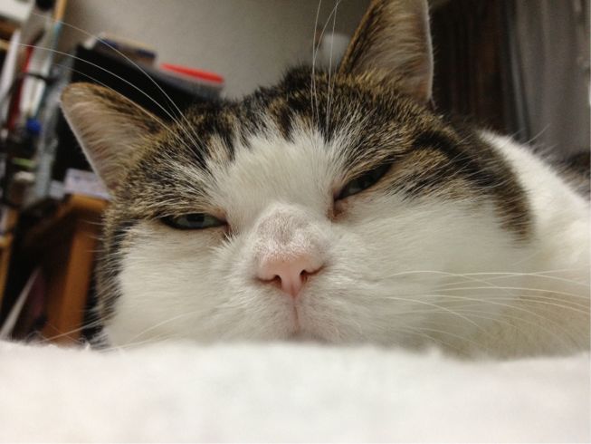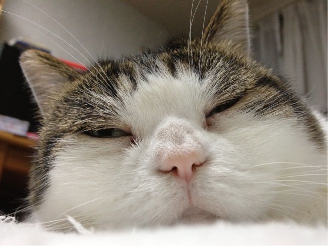 特徴:足が短い。鼻の頭がもこっとしている。モンペをはいているかのような後ろ足である。大また開きで寝る。時折DVになる。ピンポン♪が鳴ると(来客)ダッシュで飛び出し、お迎え役をしつつ、脱走の隙を狙う。