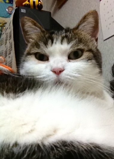特徴:足が短い。鼻の頭がもこっとしている。モンペをはいているかのような後ろ足である。大また開きで寝る。時折DVになる。ピンポン♪が鳴ると(来客)ダッシュで飛び出し、お迎え役をしつつ、脱走の隙を狙う。
