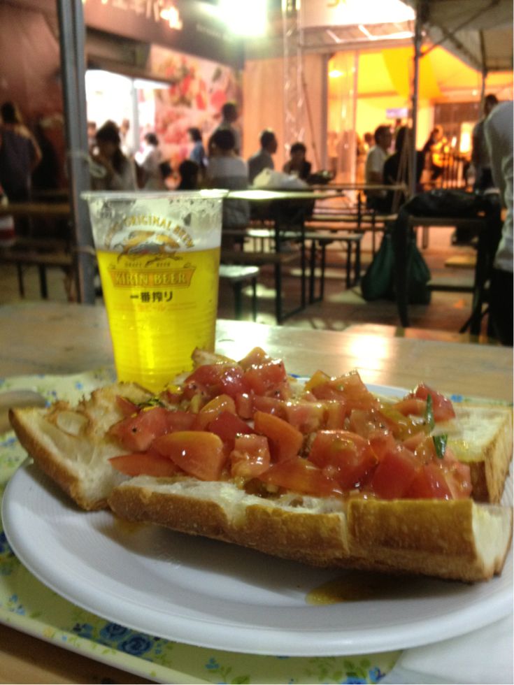 定番ビールと、トマトのブルスケッタ。風味がしっかりしていて美味しかった。