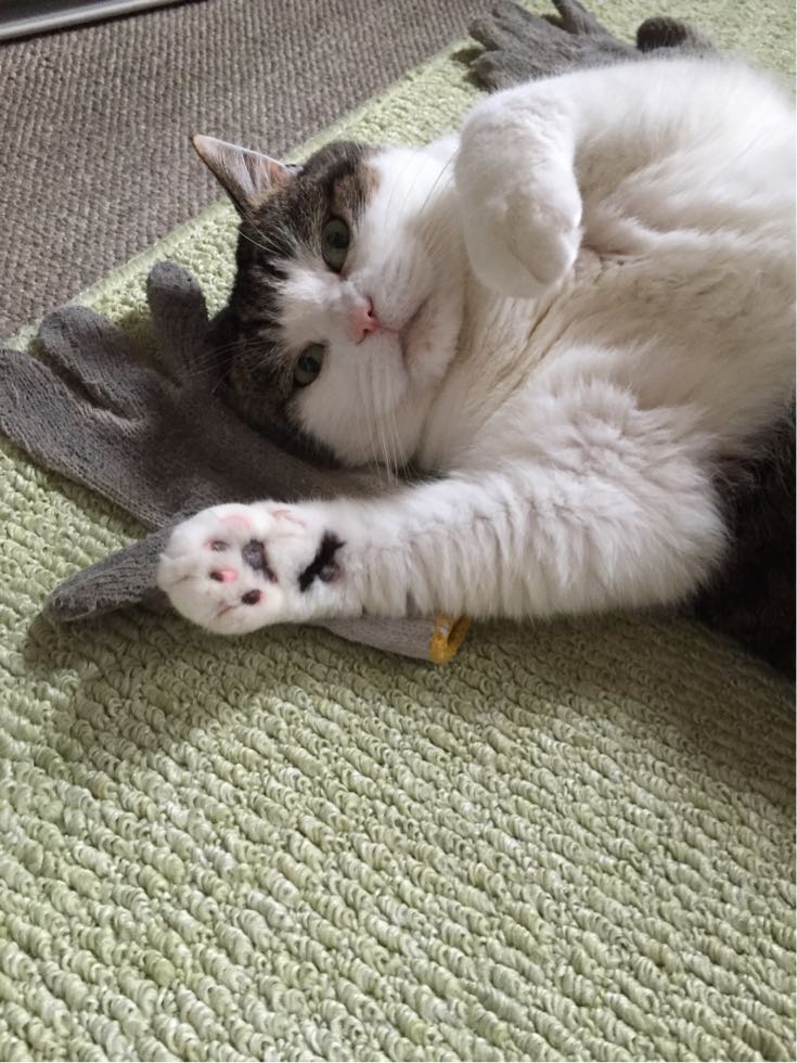 特徴:足が短い。鼻の頭がもこっとしている。モンペをはいているかのような後ろ足である。大また開きで寝る。時折DVになる。ピンポン♪が鳴ると(来客)ダッシュで飛び出し、お迎え役をしつつ、脱走の隙を狙う。