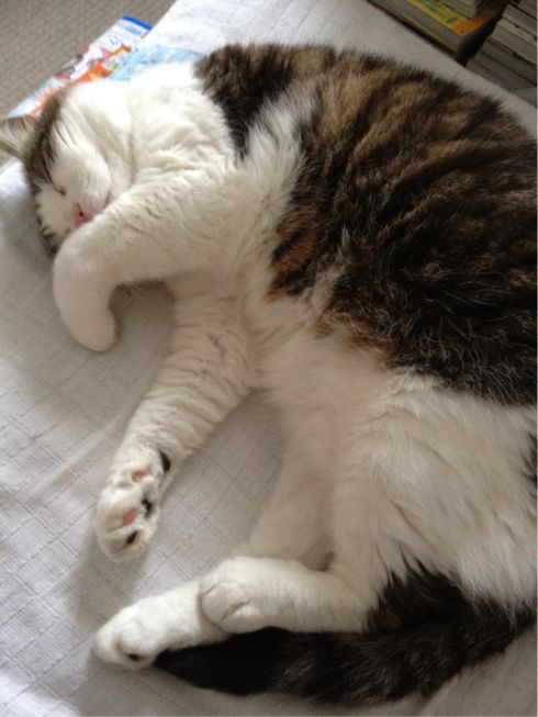 桂さん シーツに溶け込みちゅう 私の寝場所がない