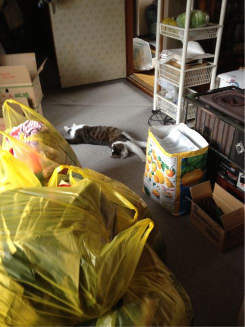 (どうなるにゃ、ゴミ袋がもっと必要ってことにゃんだにゃ?)