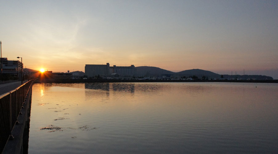 港の倉庫群 海の中に逆さに溶け込んでいて魚の住居になっていそう