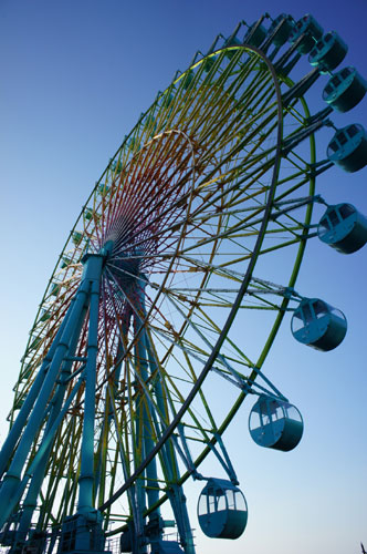 夕暮れ空の観覧車 止まっているけれど空に上って行きそう