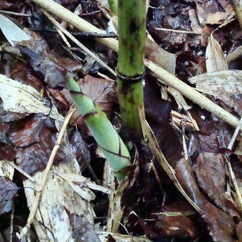 でも、道路のすぐ横から、たけのこが顔を出しているのが見え、