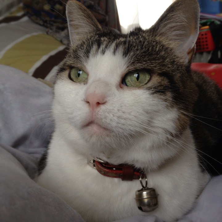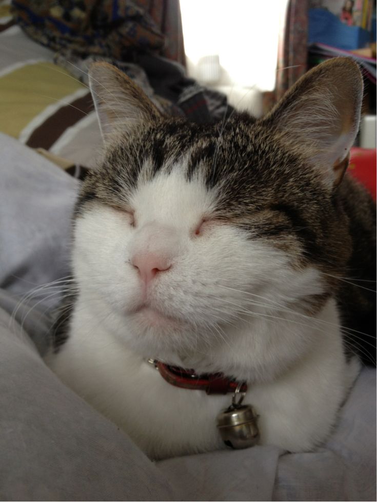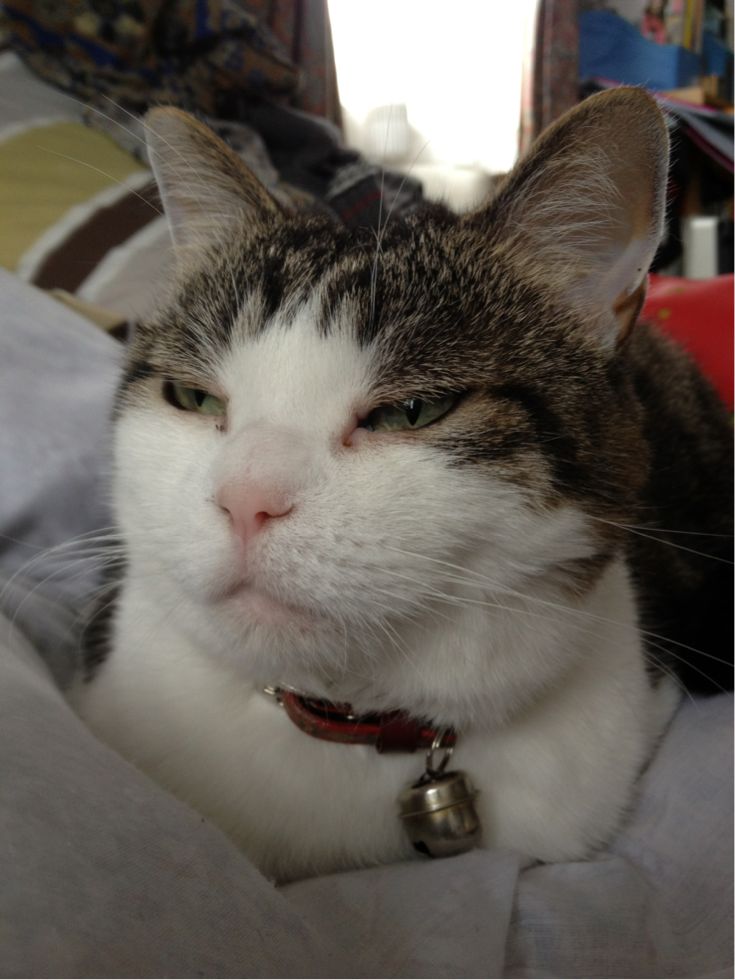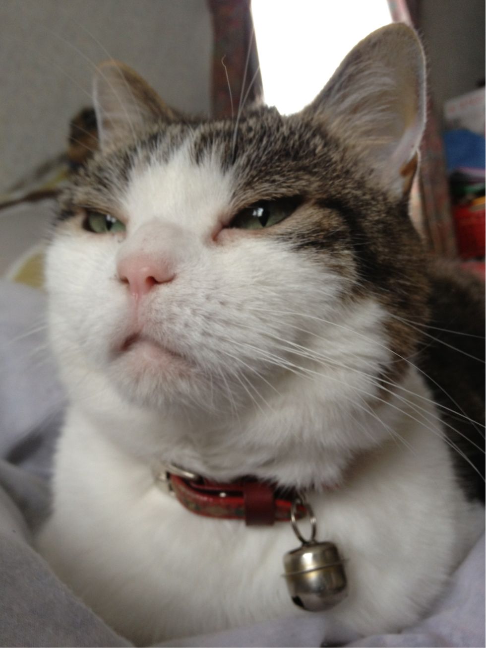 特徴:足が短い。鼻の頭がもこっとしている。モンペをはいているかのような後ろ足である。大また開きで寝る。時折DVになる。ピンポン♪が鳴ると(来客)ダッシュで飛び出し、お迎え役をしつつ、脱走の隙を狙う。