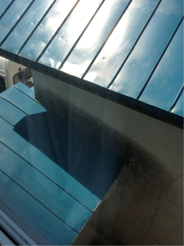 (短い渡り廊下の上、雪が溜まるので腐食がすごいですね)