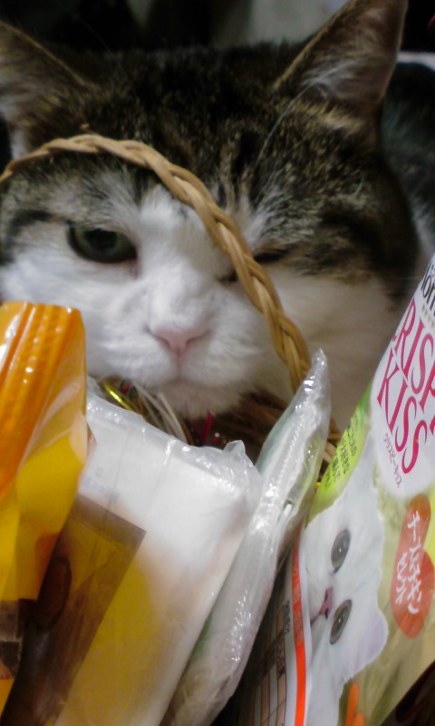 桂のおやつや、じじのおやつ等が入ったカゴに