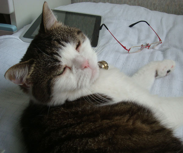 (ピチパチ嫌いだニャ、適当になでくりまわさないで