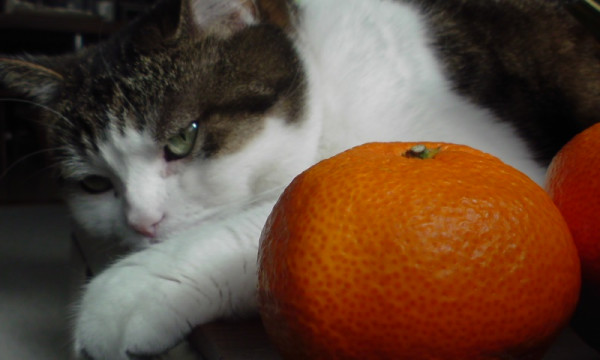 (私を撮っていたと思ったらミカンだったの?)