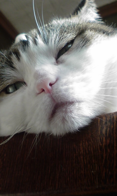 特徴:足が短い。鼻の頭がもこっとしている。モンペをはいているかのような後ろ足である。大また開きで寝る。時折DVになる。ピンポン♪が鳴ると(来客)ダッシュで飛び出し、お迎え役をしつつ、脱走の隙を狙う。