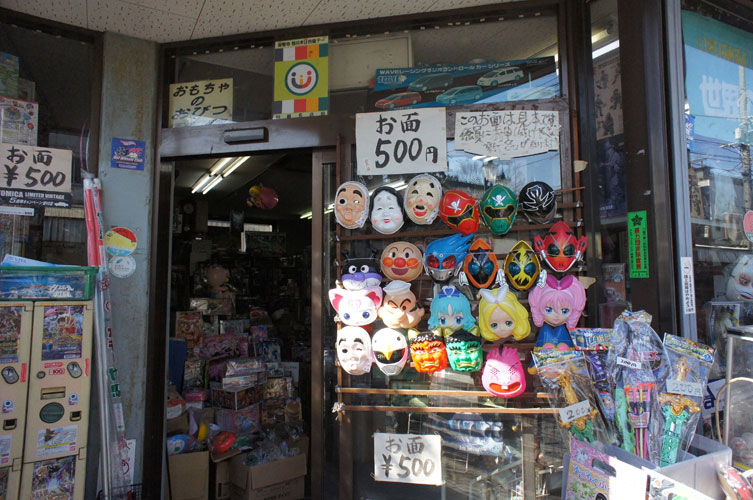 店先のお面が懐かしさを醸し出しているのですが
