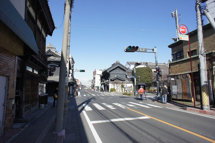 実のところ結構な交通量の道路「蔵造りの町並み」であります。ここは、県道なんですね。見物の際にはくれぐれも車に気をつけてください。