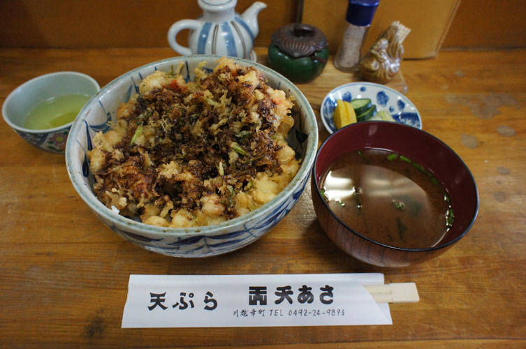 ホタテが一杯のかき揚げ丼、ボリュームたっぷりをペロリと食べて