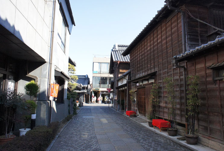 土蔵造りの店舗が並ぶ町並みは、タイムスリップか、映画村か?とも思える