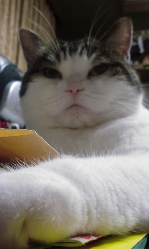 特徴:足が短い。鼻の頭がもこっとしている。モンペをはいているかのような後ろ足である。大また開きで寝る。時折DVになる。ピンポン♪が鳴ると(来客)ダッシュで飛び出し、お迎え役をしつつ、脱走の隙を狙う。