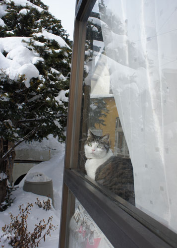 桂のみゃーさま、落雪待ちの図。