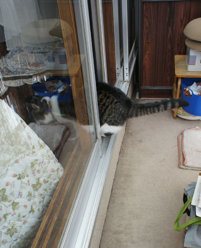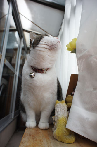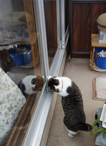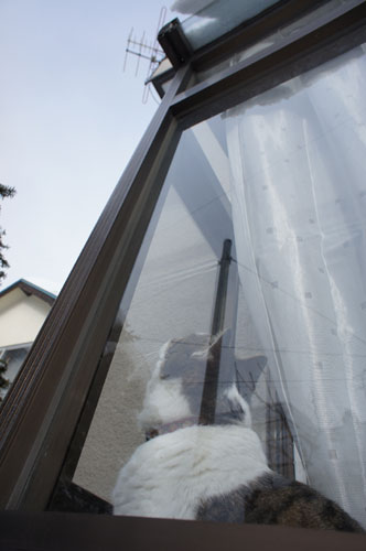 砂漠(猫トイレ)の後は、部屋の中から屋根を眺めていましたが