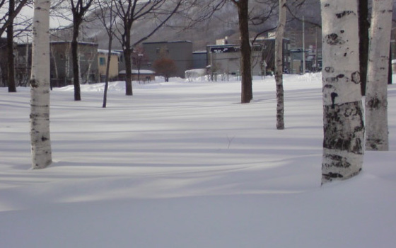 でも、今朝は細かな雪が降る中、陽が当たってできた白樺の影が、