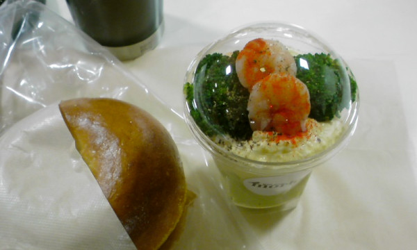 1・お昼に食べたプレーンベーグルと海老とアボガドのサラダ