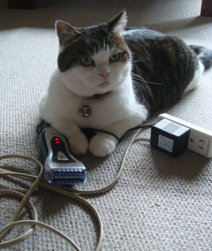 特徴:足が短い。鼻の頭がもこっとしている。モンペをはいているかのような後ろ足である。大また開きで寝る。時折DVになる。ピンポン♪が鳴ると(来客)ダッシュで飛び出し、お迎え役をしつつ、脱走の隙を狙う。