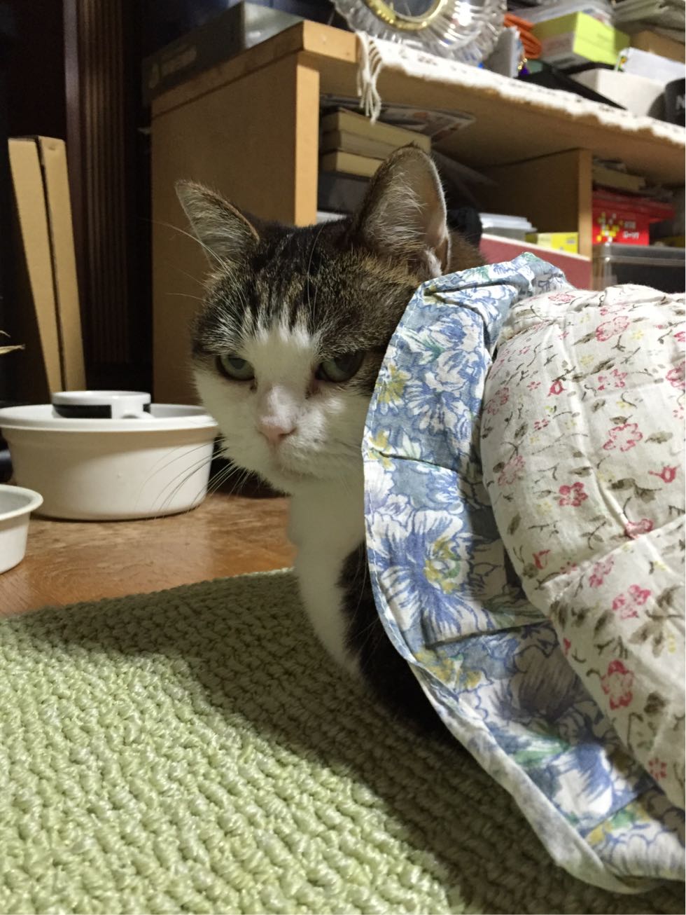 特徴:足が短い。鼻の頭がもこっとしている。モンペをはいているかのような後ろ足である。大また開きで寝る。時折DVになる。ピンポン♪が鳴ると(来客)ダッシュで飛び出し、お迎え役をしつつ、脱走の隙を狙う。