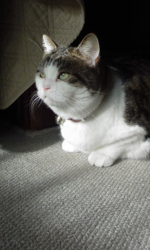 特徴:足が短い。鼻の頭がもこっとしている。モンペをはいているかのような後ろ足である。大また開きで寝る。時折DVになる。ピンポン♪が鳴ると(来客)ダッシュで飛び出し、お迎え役をしつつ、脱走の隙を狙う。